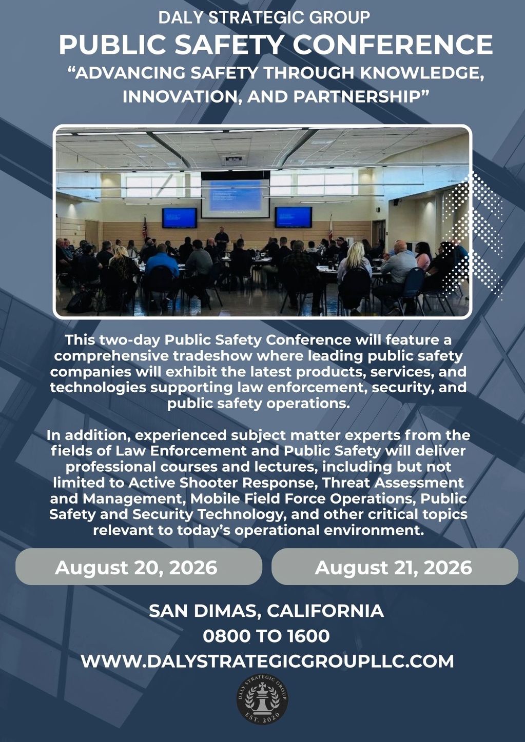 The two-day conference will include a law enforcement and security trade show featuring industry exhibits, products, services, and emerging technologies. The event will also offer specialized training courses focused on law enforcement, public safety, campus safety, and security operations.
